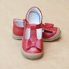 Stitched bow accent for a dash of pretty. Perfect for school, play, and special occasions, big and small. Breathable, comfortable, leather upper and lining. Flexible rubber outsole. Velcro fastener. Toddler sizes 4-13.